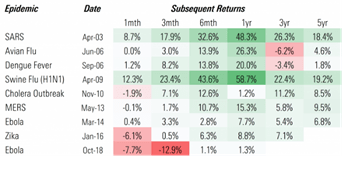 The chart below also shows how markets can rebound following some of the major epidemics in recent history: