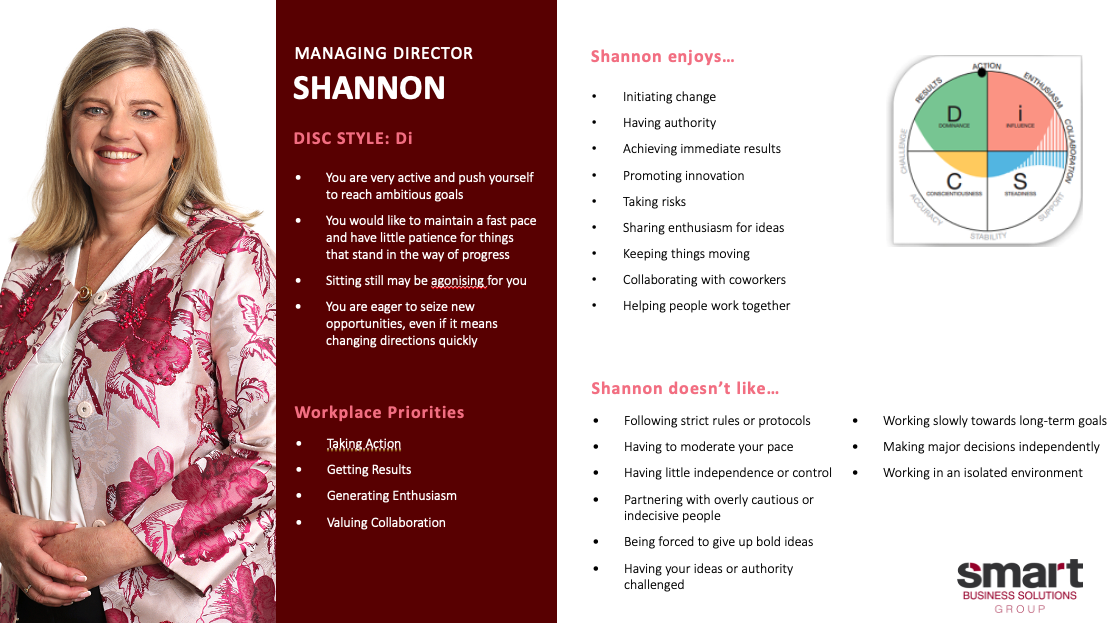 Led by Shannon, an accredited DISC trainer, our team at Smart Business Solutions